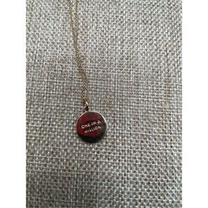 This elegant 14k gold-plated pendant necklace, featuring a delicate rolo chain. This personalized piece highlights your sense of identity with an engraved initial on the front, while the reverse side reminds you that you're truly "one in a million." The necklace's thoughtful design makes it an ideal gift or a meaningful addition to your jewelry collection.