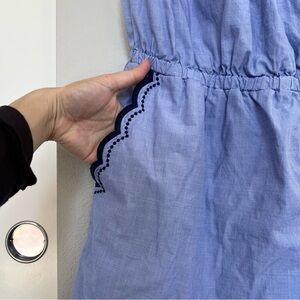 This Kate Spade One-Shoulder Daisy Embroidered Ruffle Romper is the perfect blend of feminine elegance and playful charm. The standout one-shoulder ruffle features delicate daisy embroidery with scalloped edges, adding a romantic, cottagecore-inspired touch. The elastic waist ensures a comfortable fit.
