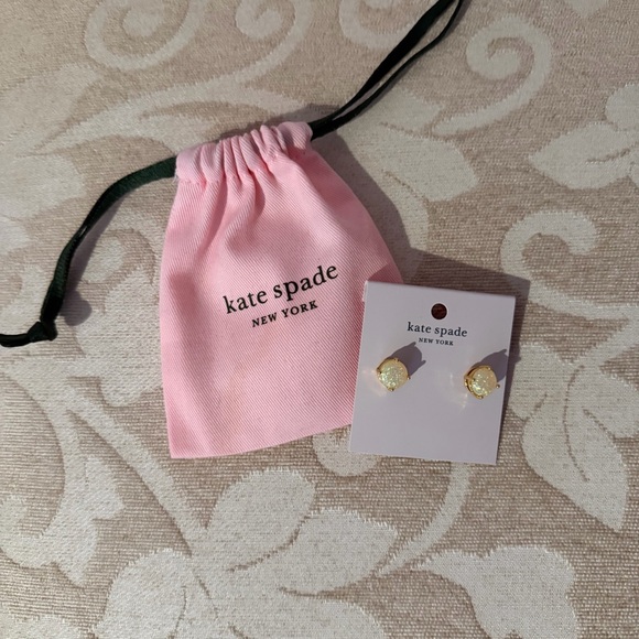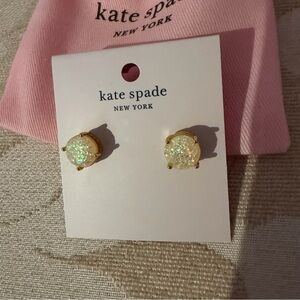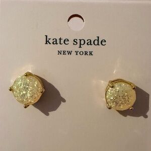 Kate Spade gold tone Rise and Shine opal glitter round stud earrings. Approximate diameter is 1/2”. Crafted with plated metal and glass. Brand new and never worn. These earrings come with a pink Kate Spade dustbag. Perfect gift for yourself or someone else.