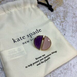 This Kate Spade ring is a size 5.5. An open concept and pink and purple Art glass. Gorgeous on the pinky. Comes with bag.