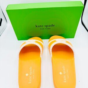 Never worn, brand new orange kate spade slides. Comes with box. Smoke free home. If you have any questions, please ask away. Reasonable offers always welcome!