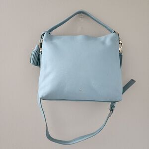 Kate Spade Orchard Street Natalya Pebbled Leather Hobo Bag Tassel Pale Blue