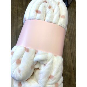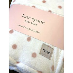 Kate Spade Oversized KING White w/ Pink Polka Dots Fleece Blanket Ultra Soft NWT.