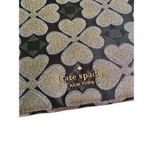 This is a Kate Spade Odette Universal Laptop Sleeve in black with an all-over jacquard pattern. It is designed for 15-inch laptops and features padding for protection. The sleeve is made of polyester and comes new with tags. It is a stylish and functional accessory for keeping your laptop safe during travel or everyday use.