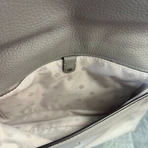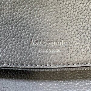 *NWOT, or Preowned EUC. This was a personal item of mine, that I don't believe I ever got around to using. It is in excellent condition! Pale grey pebbled leather with lots of roomy pockets and the quality you'd expect from Kate Spade. It has a nice long, adjustable and removable crossbody strap, with silver tone hardware. Please see the close-up photo of the branded logo for the true color. It is grey, not taupe.