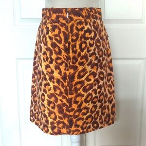 Kate Spade Panthera Canvas Skirt in Leopard. Small Front Slit. Back Zip Closure. Two pockets in front. A-line. Knee length
