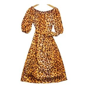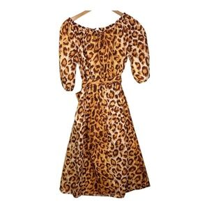 Kate Spade Panthera Puff Sleeve Leopard Print Fit And Flair Dress Size 00