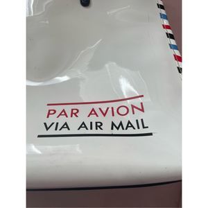 This adorable Aviation mail themed tote is a great add to any collection! This bag is in excellent condition with only a few spots that are not visible unless you’re really looking for them. This tote is perfect for the office as it will fit everything you need for the day to day Office adventure!