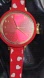 Elegant watch with a playful heart design. Adds charm to any look. Red silicone wristband , white hearts, red face and gold-tone hardware. New fresh batteries (see video)