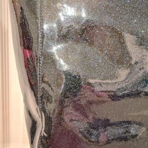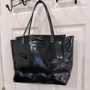 Navy blue glitter patent leather tote bag by Kate Spade. Black straps. Dark royal blue navy logo lining. Excellent used condition. Like brand new with the exception of a small place on the handles as seen in photo.