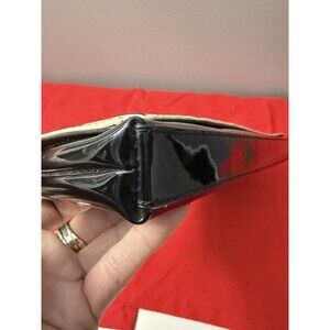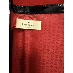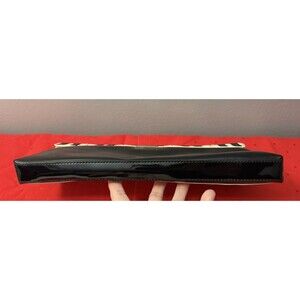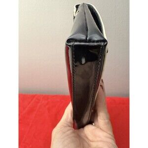 The Kate Spade Patent Leather Duet Piano Key Red Lined Clutch Purse Handbag is a stylish and sophisticated accessory perfect for various occasions. With a rectangular shape and magnetic closure, this large clutch features a black and white exterior with gold-plated hardware accents. The handbag is lined with red fabric and includes inner pockets, making it both fashionable and practical. The Piano Key design adds a touch of charm, while the patent leather finish gives it a sleek and elegant look. Ideal for women who appreciate designer pieces with a music theme. Measures 13 length, 6 height and 1 depth! Really cute bag!