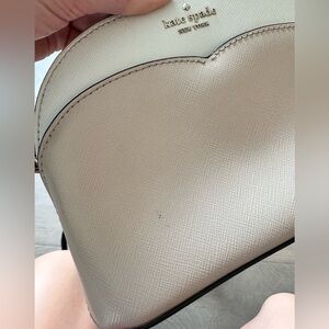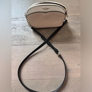 Kate spade Payton small dome crossbody bag in white and tan. Used for a short amount of time and has been stored in a clean place. In great condition, just a small smudge on the front. See photos.