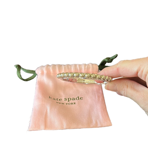 Add a touch of timeless elegance to your jewelry collection with this Kate Spade Pearly Delight hinged bangle bracelet. Featuring luminous faux pearls set in a polished silver-tone finish, this classic yet playful piece is perfect for everyday wear or special occasions. The hinged design makes it easy to slip on and off while offering a comfortable, secure fit.
