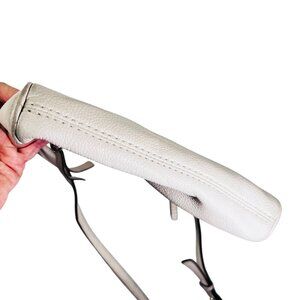 This crossbody bag offers a blend of practicality and elegance, featuring pebbled leather, an adjustable strap, and a front zip pocket for easy storage.