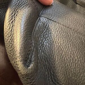 Kate Spade Pebbled Leather Drawstring Bucket Bag is in good used condition. There are some signs of wear on the bottom corners. The strap has been sewn back together. Please see all pictures for details. Inside is clean with no signs of wear. Outside has a few small wear marks.