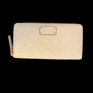 Kate Spade Penn Place Embossed Neda Leather Zip Around Wallet Cream Money Holder