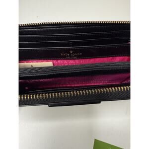 * Item details: Kate Spade Penn Valley Neda Wallet Black Cream PVC Striped Zip Around 12-Card Slot