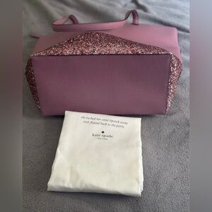 Perfect for day or night gold hardware with glitter detail Approx. dimensions: 15" (L) x 11.5" (H) x 5.8" (W) shoulder straps drop length: 9.5" Top zip closure 1 zipper pocket and 2 slip pockets inside Color: Peony Pink