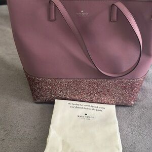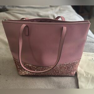 Perfect for day or night gold hardware with glitter detail Approx. dimensions: 15" (L) x 11.5" (H) x 5.8" (W) shoulder straps drop length: 9.5" Top zip closure 1 zipper pocket and 2 slip pockets inside Color: Peony Pink