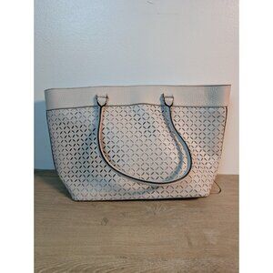 The Kate Spade Perri Lane Huntington Purse Tote Bag is a stylish and versatile accessory for any woman. Made from luxurious perforated leather with gold hardware accents, this large tote features double beige leather handles, a pebbled finish, and a zip closure. The cream exterior with a hint of pink lining adds a touch of elegance, making it suitable for casual, formal, or business occasions. With inner pockets for organization and a spacious interior, this tote is both fashionable and practical for everyday use.