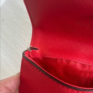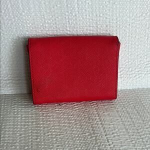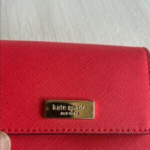This vibrant red wallet from Kate Spade is crafted from high-quality leather, offering a sleek and stylish way to organize your essentials. Its compact design makes it perfect for on-the-go use, while the structured edges add a touch of sophistication.