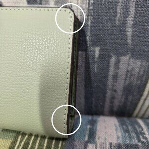 Please note that I notice there is a minor production blemish - on the right side of the wallet in the front, the leather was cut a bit not as neat as the other (especially at the corner), it should have been more smooth and round corner instead of a bit of a straight line there at the corner and close to the bottom. Please make sure you don't mind this bit before purchase (see last pic for reference) There is no other issue to be noted.