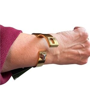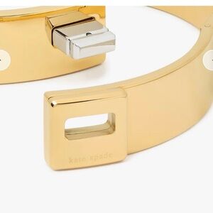 Chic gold tone bracelet by Kate Spade. Features a stylish contrasting silver turick. Measurements: Width: 2.125", Accessory Length (in): 2.25. MSRP $139. Brand new with tags. Perfect condition. Does not come with dust bag.