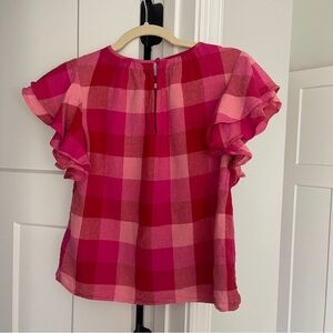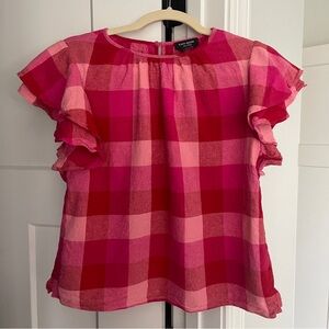 Kate Spade Picnic Woven Flutter-sleeve Top Pink Red Ruffle Short Sleeve Blouse