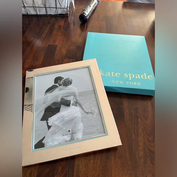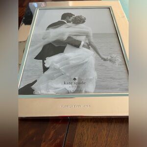Kate Spade 8x10 inch frame. Silver with turquoise trim. Says “happily ever after” at the bottom. In excellent condition. Includes box.