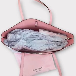 Add a pop of color to your collection with this Kate Spade New York All Day large tote in Grapefruit Soda Gingham. This brand new bag, with tags attached, features a vibrant pink gingham pattern, making it perfect for brightening up any outfit. Spacious and stylish, it's ideal for everyday use. Don’t miss out on this chic and eye-catching tote!