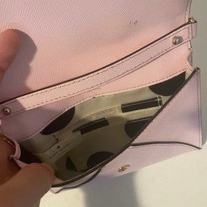 Feminine and sweet Kate Spade Envelope clutch/wallet. Strap is removable and it can be carried as a clutch or put in to a larger bag like a wallet (chain-inset crossbody strap, 22" drop.)