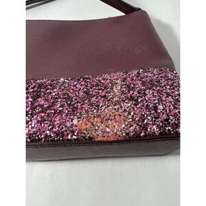 Add a touch of sparkle to your outfit with this Kate Spade pink glitter crossbody bag. Perfect for any occasion, this stylish bag combines elegance and functionality.marks in one spot as shown in the picture maroon red