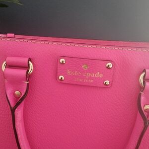 Chic and stylish, this EUC Kate Spade pink handbag is perfect for any occasion. Its vibrant color adds a pop of fun to your outfit. Wellesey Small Quinn Hot Rose Crissbody WKRU2723, 10.5" w x 8.5" h. Missing long strap. No defects.
