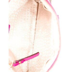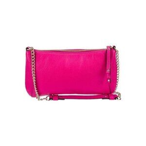 Condition is: Very Good, pre-owned. Details: Pink Leather, Gold-Tone Hardware, Chain-Link Shoulder Strap, Chain-Link Accents, Logo Jacquard Lining & Three Interior Pockets, Zip Closure at Top, Shoulder Strap Drop: 10.75", Height: 5.75", Width: 10.5", Depth: 1"