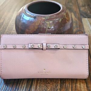 Kate Spade Pink Leather Wallet with Bow And Diamond Stud Detail