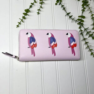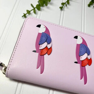Kate Spade Pink Parrot Flock Party Large Continental Zip Around Wallet