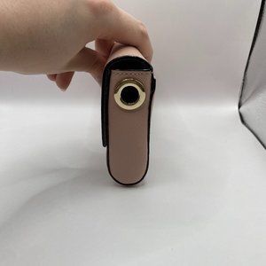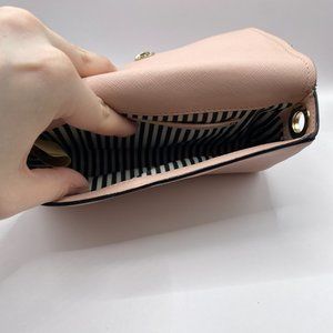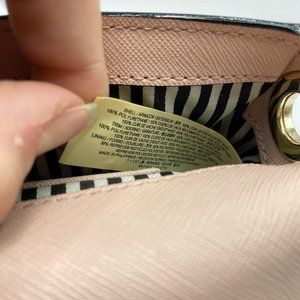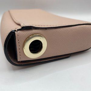 Made from luxe cross-hatched leather, the clutch/chain crossbody snap and front flap closure set this purse apart. Small but chic, this mini bag keeps clutter to a minimum and style to the max. Crosshatched leather with matching trim book stripe print on poly twill lining.