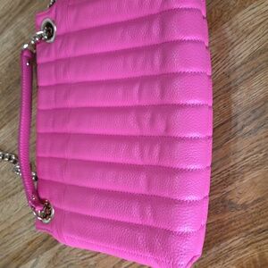 Elevate your style with the Kate Spade Pink Quilted Shoulder Bag. This chic accessory features a vibrant pink hue and elegant chain detailing, perfect for any occasion.