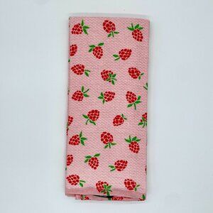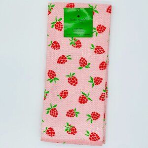 Kate Spade Pink Red Berry Print Kitchen Towels Set of 2 Strawberries Raspberries