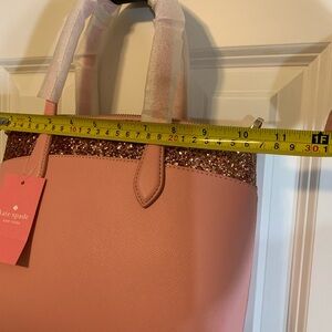 BRAND NEW NEVER USED WITH TAGS. Elegant Kate Spade Handbag with gorgeous rose glitter accent. Gold kate spade logo featured. Full zip closure. Inside pocket.