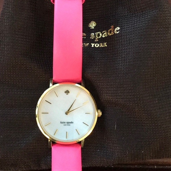 Beautiful Kate Spade Gold Watch with mother of pearl face and bright pink leather strap