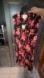Chic dress with bold floral design. Features pink and red flowers on a black base.