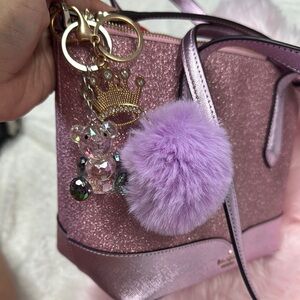 This elegant Kate Spade satchel combines a structured design with a glamorous pink and silver color palette. The bag's metallic and glitter accents add a touch of sophistication, making it perfect for special occasions. Its classic shape and top handles ensure both style and practicality. PLEASE CHECK THE PHOTOS GLITER CAME OFF IN THE BACK PART AND SOME PARTS IN FRONT . Its a beautiful mini bag