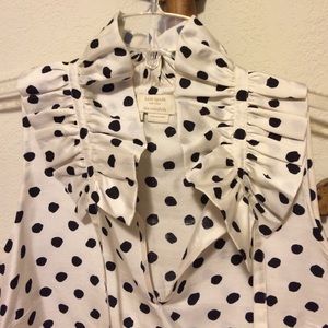 100% silk blouse from Kate Spade. White with black polka dots. Only worn a few times- like new condition! Purchased directly from Kate Spade