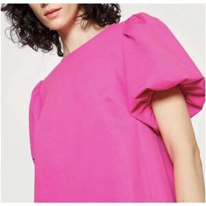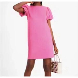 Kate Spade Ponte Puff Sleeve Shift Dress Pink Womens Small Jewel Neck Stretch