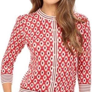 Kate Spade Posy Ikat Cotton Cardigan XS Red Cream Floral Striped