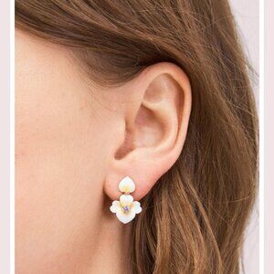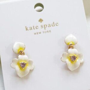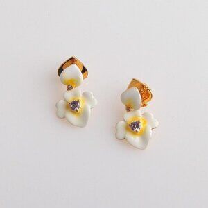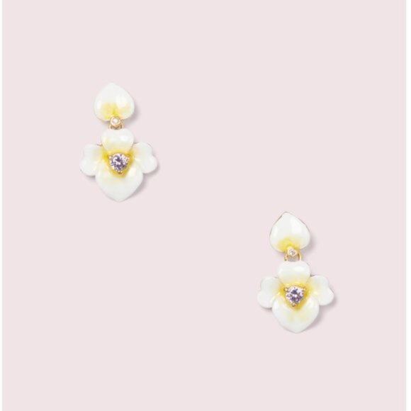 Crafted of gold-tone metal and hand-painted enamel, our precious pansy collection is true to its name. and these drop earrings are designed with lots of thoughtful details, like the sparkly centers and heart-shaped petals.