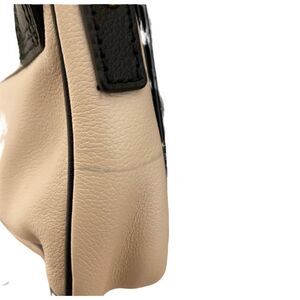Cream pebbled leather crossbody. Black leather detailing and bow. Black leather strap with gold chain. Gold Kate Spade logo in bow center. Flap with magnetic closure. Inside has a slip pocket. Leather has some pen marks but nothing major or very noticeable, as shown. Dust bag included.