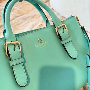 Elevate your style with this chic turquoise handbag from Kate Spade. Perfect for any occasion, this bag adds a pop of color to your outfit.