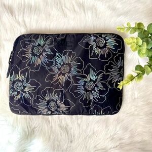 Kate Spade Puffer Laptop Sleeve Hollyhock Iridescent Black Floral 14" Case Bag